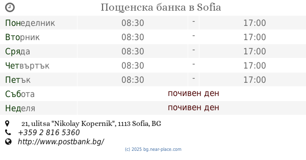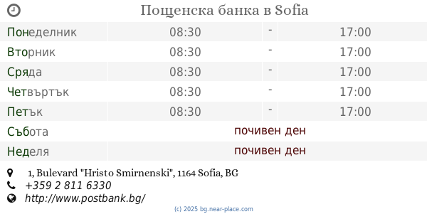 | Събота | почивен ден | |||||